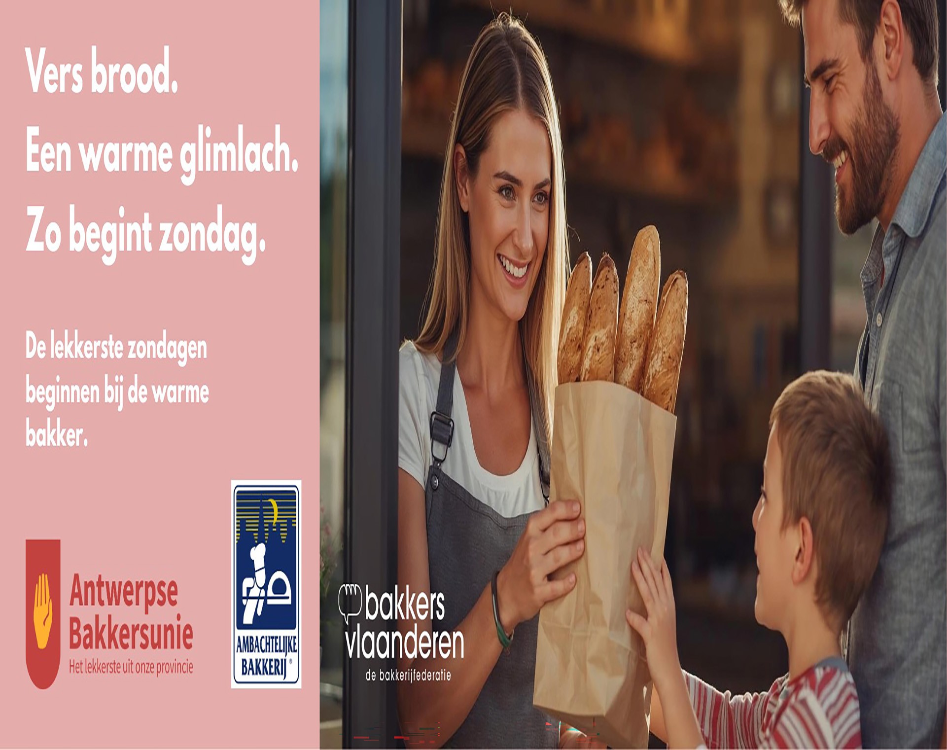 Wekelijks verschijnt een advertentie van Bakkers Vlaanderen / Antwerpse Bakkersunie in De Zondag van Roularta.