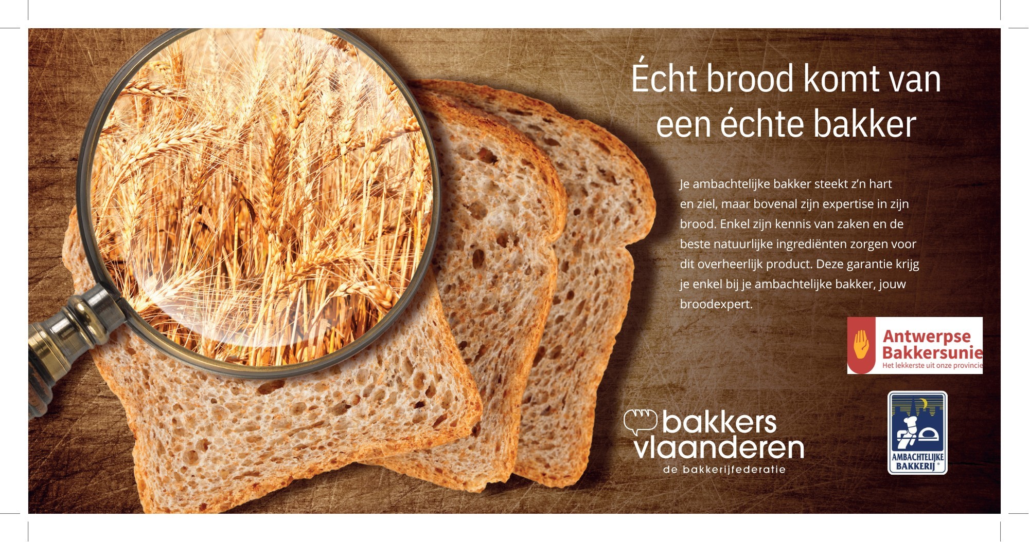 Wekelijks verschijnt een advertentie van Bakkers Vlaanderen / Antwerpse Bakkersunie in De Zondag van Roularta.